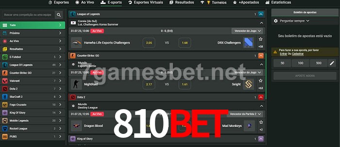 O 810bet oferece uma grande seleção de opções de apostas em e-sports com probabilidades competitivas